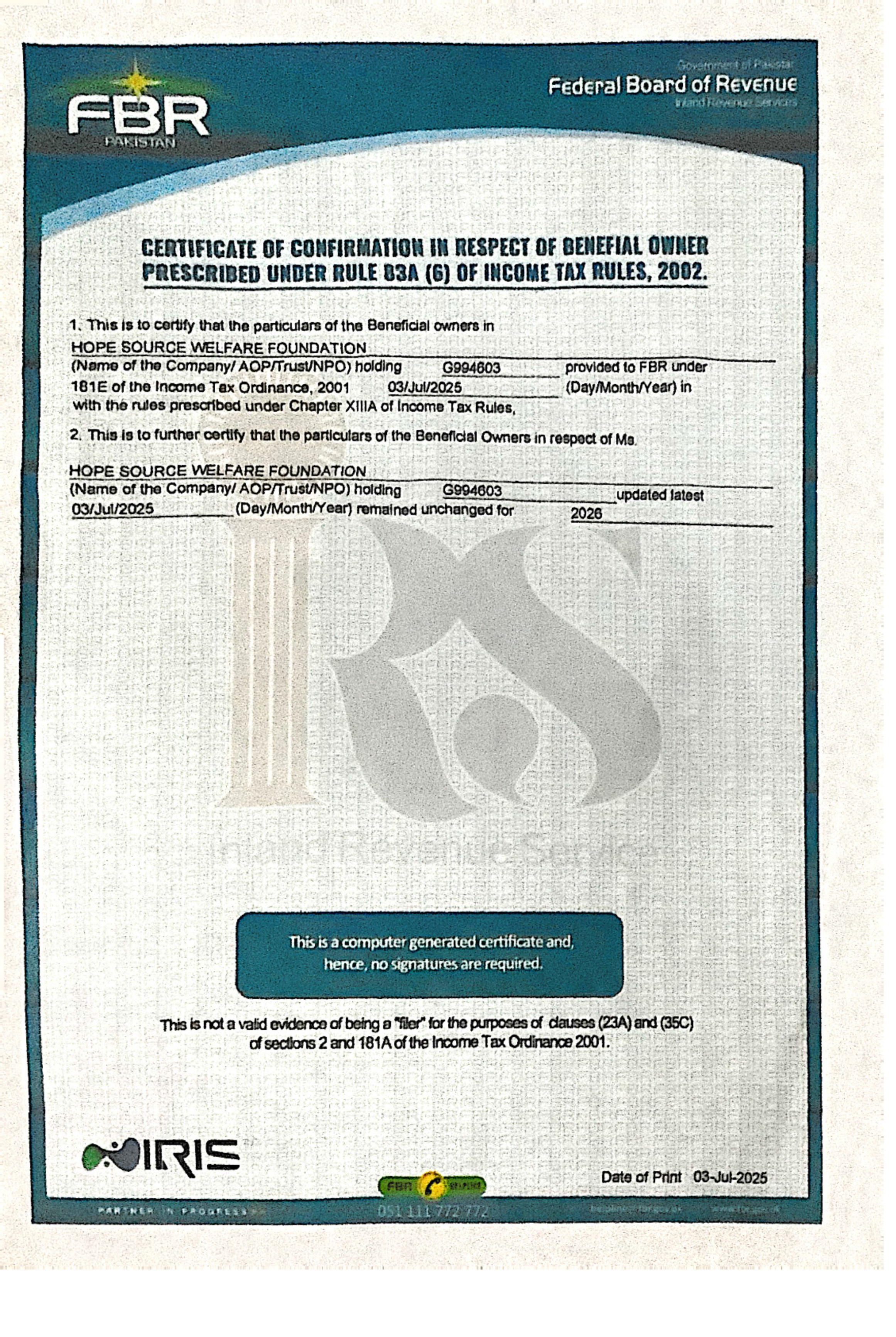 Registration Certificate